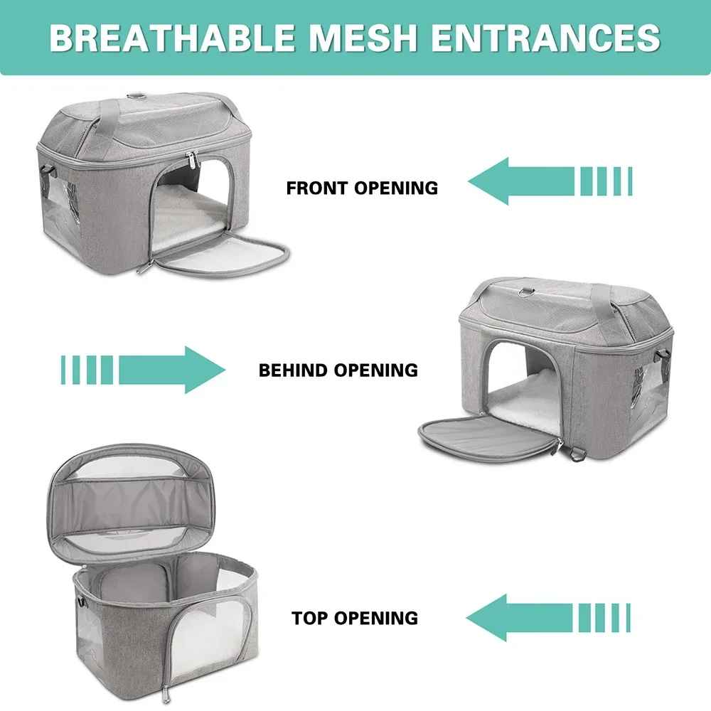 Avez-vous remarqué comme les chats détestent se sentir confinés? Grâce aux ouvertures multiples (avant, arrière et dessus), vous pouvez facilement interagir avec votre compagnon pendant le trajet, réduisant considérablement son anxiété.